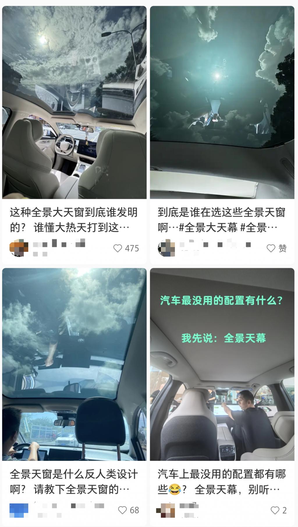 ▲社交网络上对全景天幕设计的集体吐槽