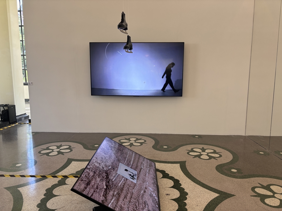 胡佳艺分享创作《冰刀》时的心路历程,“我来自新疆,冬天上体育课时,操场被冻住了,我们就会滑冰到操场。”她回忆,“后来到了其他城市,路过建设工地时,看到没有被安装上去的钢化玻璃,反射着天空的灰白色,很像冰面,我就想在上面滑一次。”